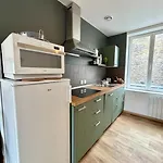 A fully equipped kitchen features coffee and tea making equipment, along with a microwave oven, a refrigerator, and kitchenware for self-catering purposes. Appartement Idealement Situe Au Coeur De Dieppe is within easy walking distance of Port de Plaisance bus station.